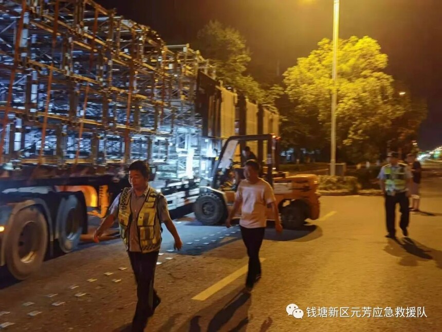 成功协助下沙交警大队处置道路货运车辆倾斜事故