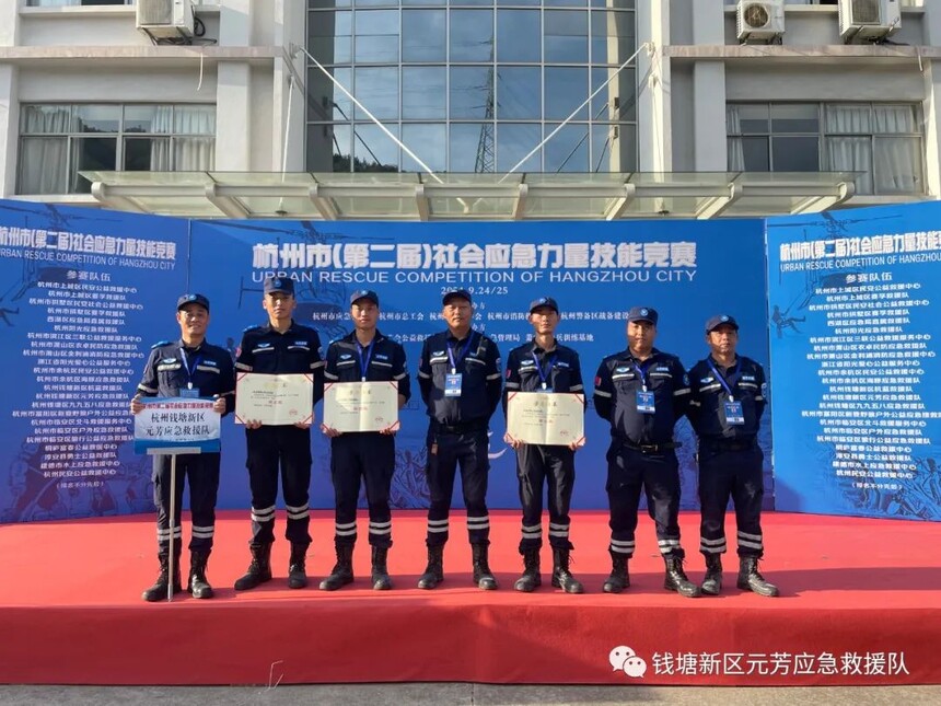 钱塘元芳救援队于来自全市各区22支老牌的社会应急救援队伍同场竞技。